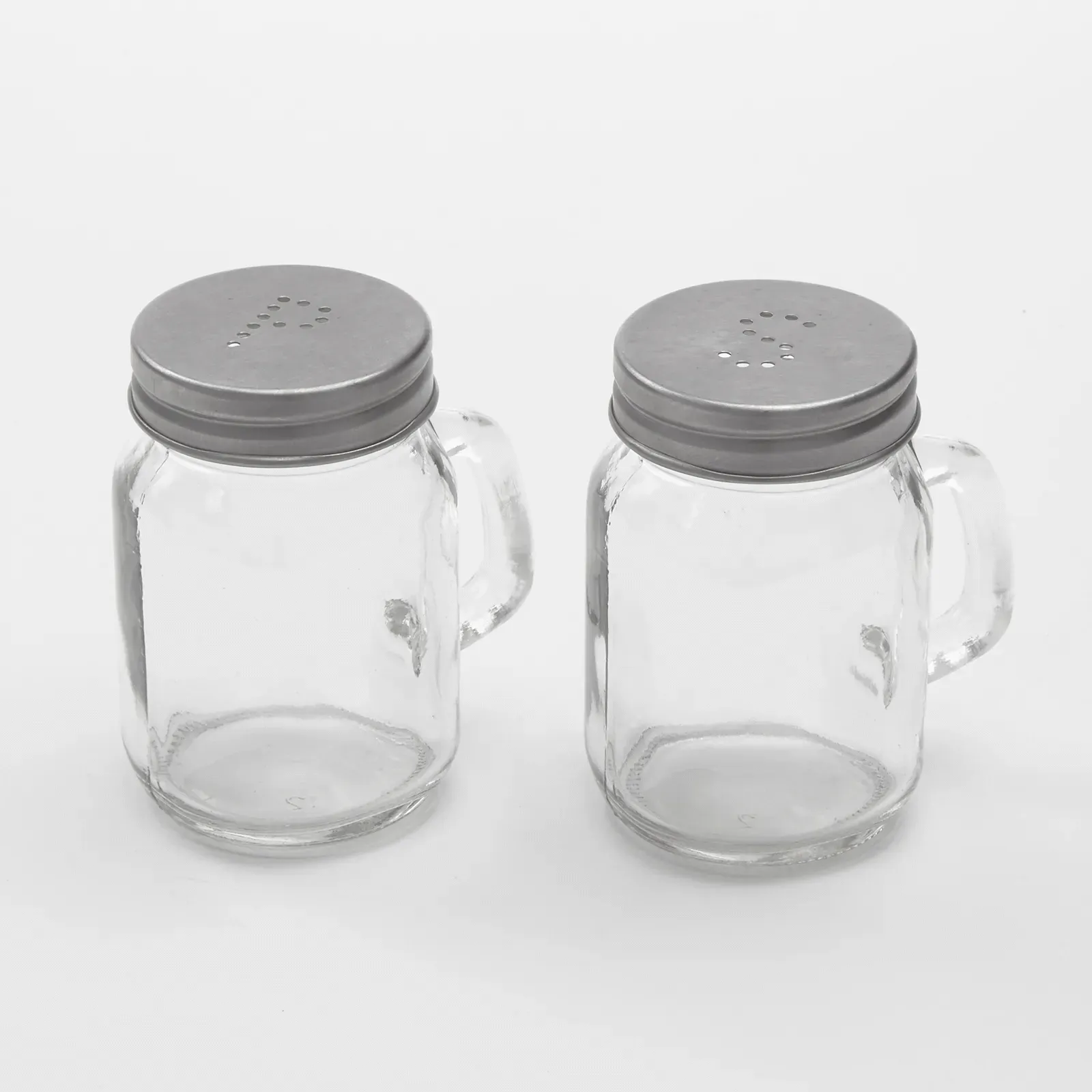 Rediscover Culinary Innovation with the American Metalcraft MSP4 Salt / Pepper Shaker. This high-quality shaker set is a must-have for any commercial restaurant. Crafted by American Metalcraft, a trusted vendor in the industry, this set is designed to enhance the dining experience for your customers. The set includes two 4 oz. mason jar shakers, perfect for holding salt and pepper. The clear glass construction allows for easy identification of contents, while the perforated top ensures controlled seasoning. Measuring 5"L x 4-3/4"W x 4"H, these shakers are compact and easy to handle. Elevate your restaurant's table setting with the American Metalcraft MSP4 Salt / Pepper Shaker and impress your customers with every meal.