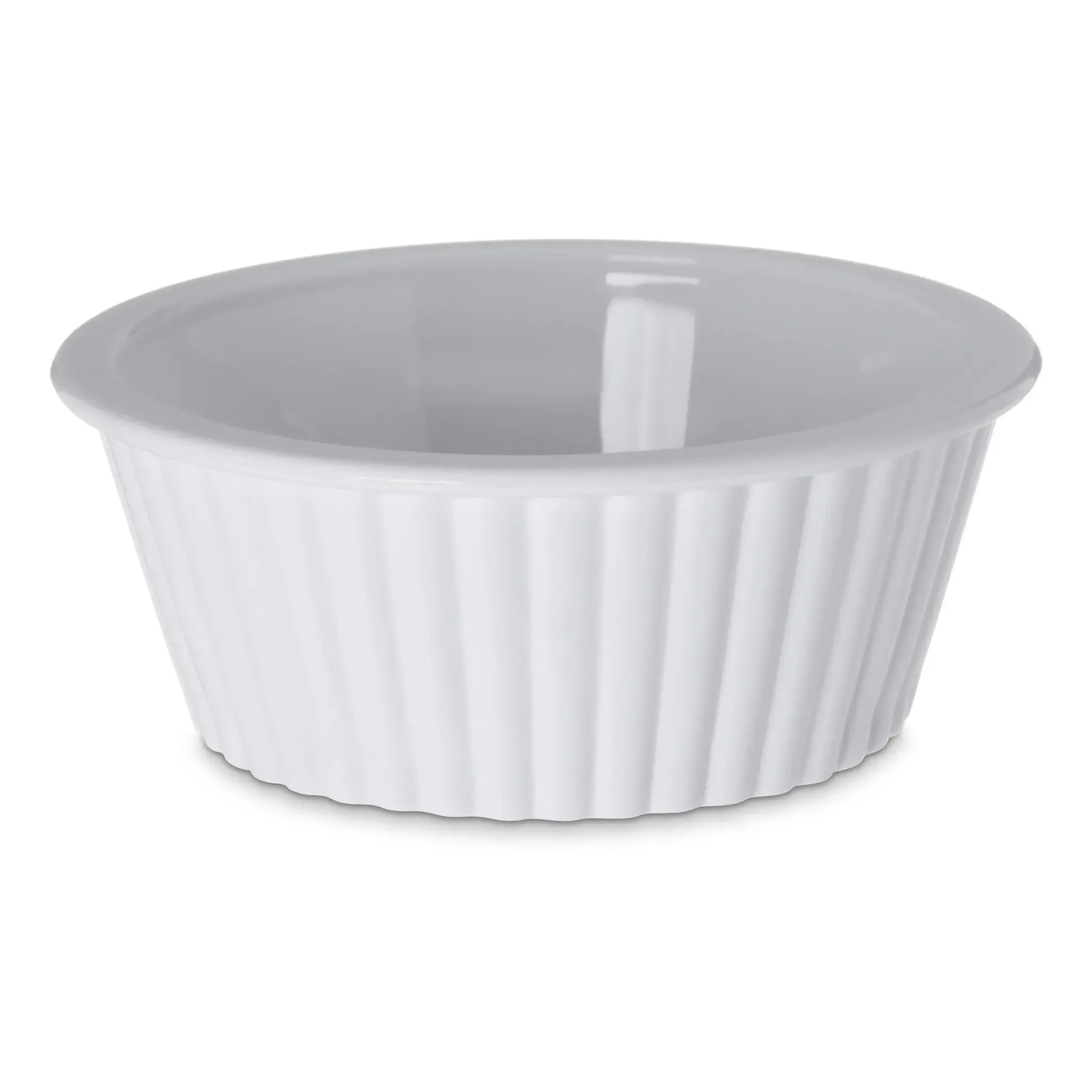 Equip for success with essential tools like the Carlisle 084402 Ramekin / Sauce Cup. Designed for commercial restaurant use, this plastic ramekin is a must-have for any professional kitchen. With a capacity of 2 ounces and a narrow rim, it is perfect for serving sauces, condiments, and individual portions. The fluted design adds a touch of elegance, while the stackable feature saves valuable storage space. Made from break-resistant SAN material, this ramekin is built to withstand the demands of a busy restaurant environment. It is also dishwasher safe, ensuring easy and efficient cleaning. The white color adds a clean and modern look to any table setting. Trust Carlisle, a reputable vendor in the industry, to provide you with durable and reliable restaurant supplies.