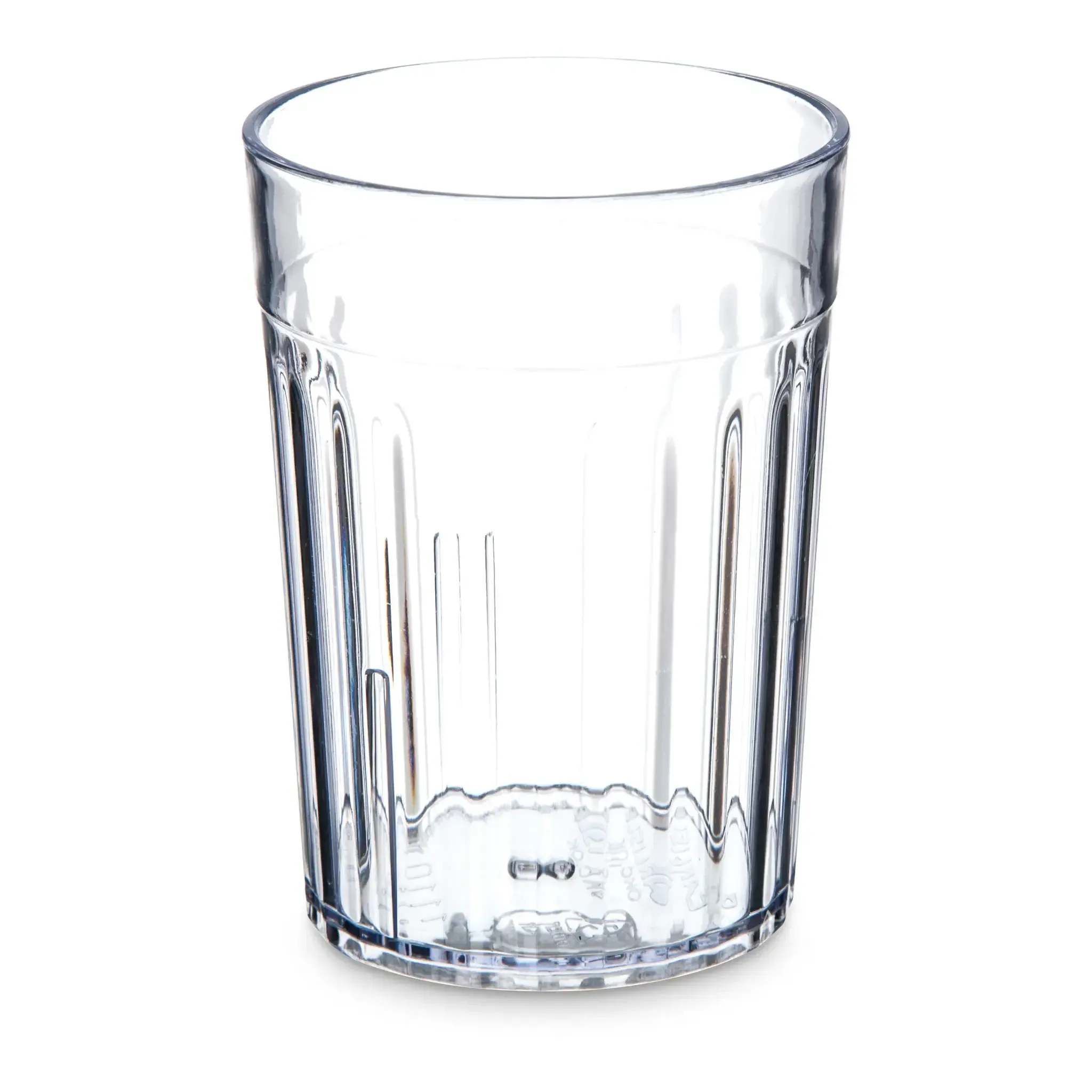 Introducing the Carlisle, 111007, Tumbler, Plastic a must-have for any commercial restaurant. Set apart with the latest innovations, this fluted, stackable tumbler is designed to elevate your dining experience. With a capacity of 10 oz. (10.20 oz. flush fill), it's perfect for serving refreshing beverages to your customers. Made from break-resistant and dishwasher-safe SAN material, this tumbler ensures durability and easy cleaning, saving you time and effort. Its clear design adds a touch of elegance to your table settings, while the BPA-free construction guarantees the safety of your guests. Whether you're running a bustling café or a high-end restaurant, the Carlisle, 111007, Tumbler, Plastic is the ideal choice for serving drinks in style.