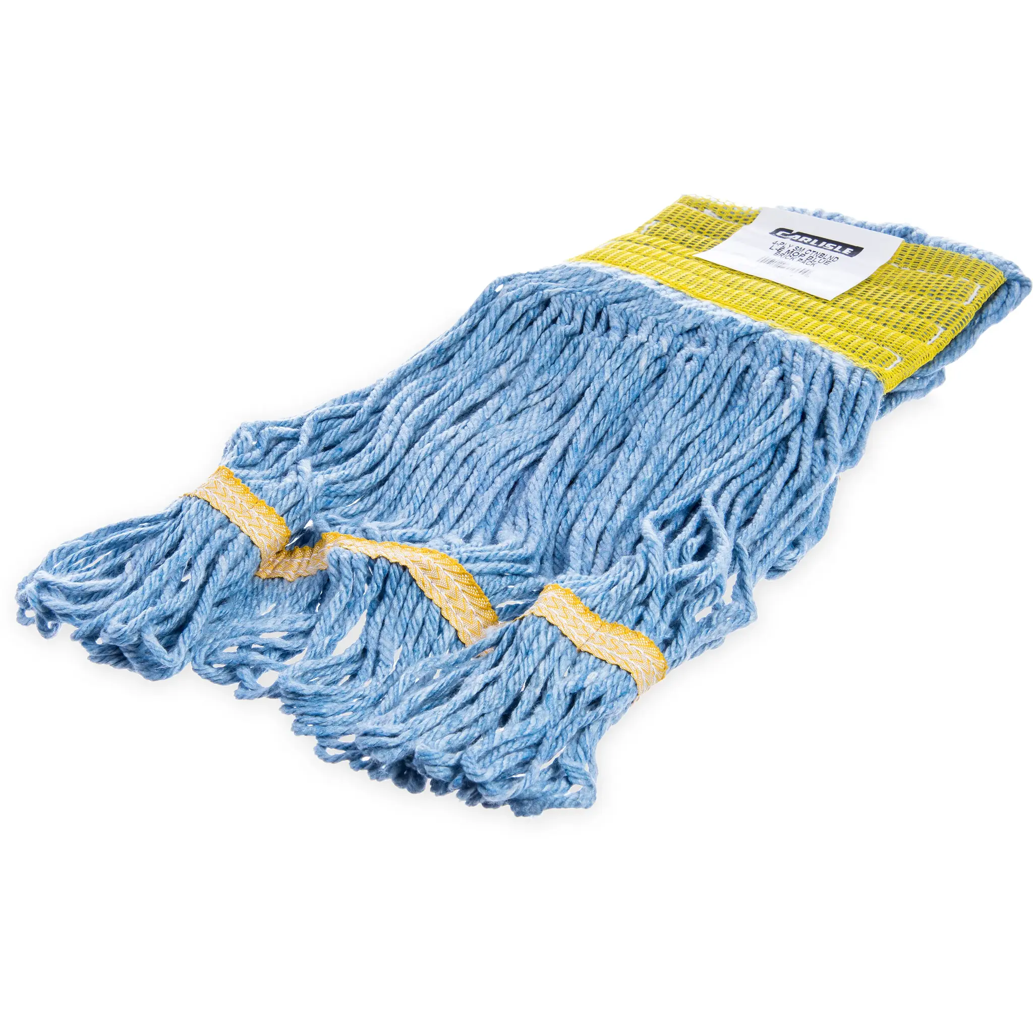 Elevate your culinary game with the Carlisle 369442B14 Wet Mop Head. Designed for commercial restaurant use, this small, 4-ply mop head is a game-changer in maintaining cleanliness and hygiene. The looped-end construction ensures maximum durability and prevents fraying, making it ideal for heavy-duty cleaning tasks. The blue synthetic/cotton blend yarn effectively traps dirt and debris, while the yellow 5W vinyl-coated band adds strength and stability. This washable mop head can be reused multiple times, saving you money on replacements. Its non-pre-shrunk design ensures a perfect fit every time. Trust Carlisle, a renowned vendor in the industry, to deliver exceptional quality and performance. Upgrade your cleaning routine with the Carlisle 369442B14 Wet Mop Head and experience the difference it makes in your commercial kitchen.