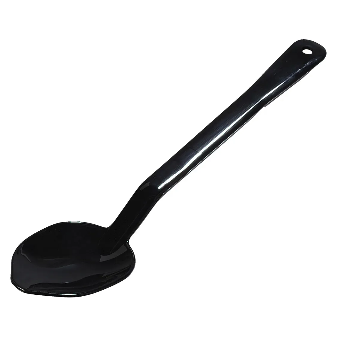 Create masterpieces with state-of-the-art tools. Introducing the Carlisle 442003 Serving Spoon, Solid. This high-quality serving spoon is a must-have for any commercial restaurant. With its 13" length and notched handle, it provides the perfect balance of comfort and control, allowing you to serve dishes with precision. The spoon is made of durable plastic that can withstand temperatures up to 212°F and dry heat up to 270°F, making it ideal for a busy kitchen. Its dishwasher-safe design ensures easy cleaning, saving you time and effort. The sleek black color adds a touch of elegance to your table setting, while the NSF certification guarantees its safety and quality. Whether you're serving soups, stews, or sauces, the Carlisle 442003 Serving Spoon, Solid is the perfect tool to elevate your culinary creations.