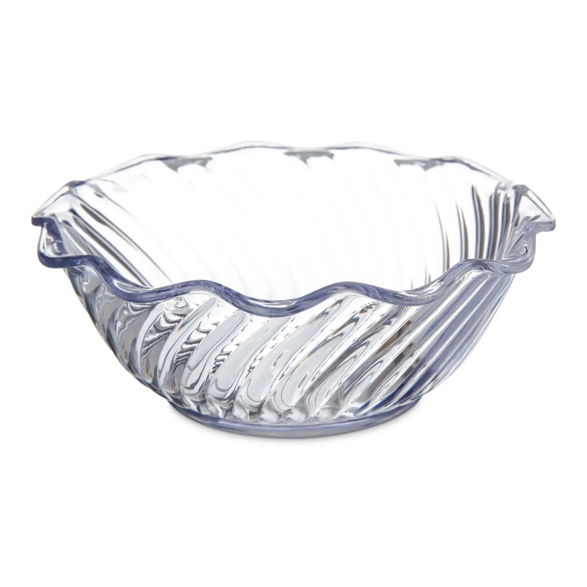 Create masterpieces with state-of-the-art tools using the Carlisle 453307 Soup Salad Pasta Cereal Bowl. Designed for commercial restaurant use, this bowl is a must-have for any professional kitchen. With a capacity of 13 oz., it is perfect for serving soups, salads, pastas, cereals, and more. The stackable design allows for easy storage, saving valuable space in your kitchen. Made from break-resistant polycarbonate, this bowl is durable and long-lasting, ensuring it can withstand the demands of a busy restaurant environment. The scalloped edging adds a touch of elegance to your presentation, while the clear design allows for easy visibility of the contents. Dishwasher safe and recyclable, this bowl is also BPA-free and NSF certified for peace of mind. Elevate your culinary creations with the Carlisle 453307 Soup Salad Pasta Cereal Bowl.