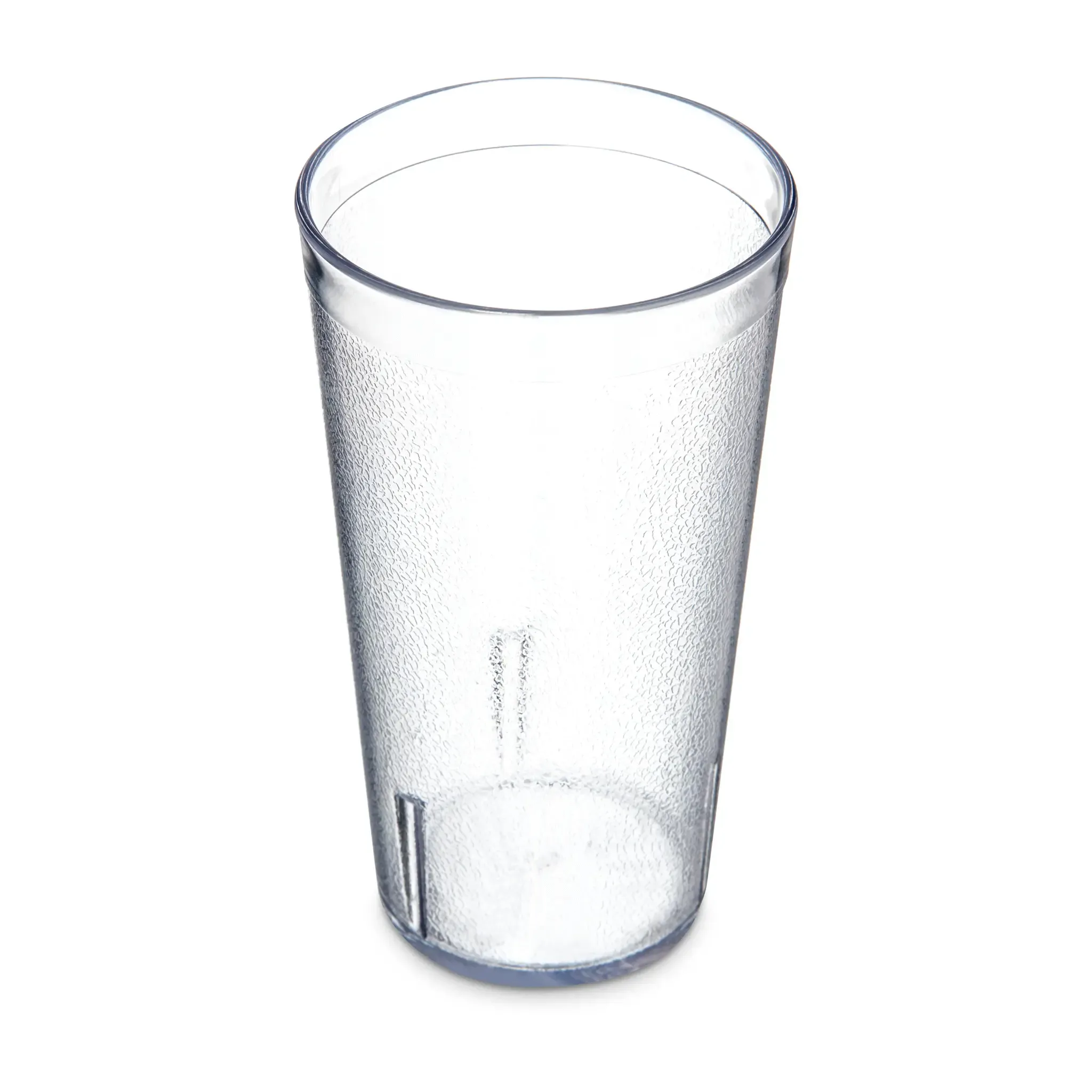 Introducing the Carlisle 521607 Plastic Tumbler, the perfect addition to any commercial restaurant. This stackable tumbler is designed with a 16 oz. capacity (17.70 oz. flush fill) and a tapered shape, making it easy to stack and store. The textured exterior provides a secure grip, ensuring that your customers can comfortably enjoy their beverages. Made from durable and dishwasher-safe SAN material, this tumbler is built to withstand the demands of a busy restaurant environment. It is also recyclable and BPA-free, promoting sustainability and customer safety. With a clear design, it allows for easy visibility of the drink inside, enhancing the presentation of your beverages. Proudly made in the USA, you can trust the quality and authenticity of the Carlisle 521607 Plastic Tumbler. Upgrade your restaurant's drinkware collection and optimize your establishment with this premium equipment.