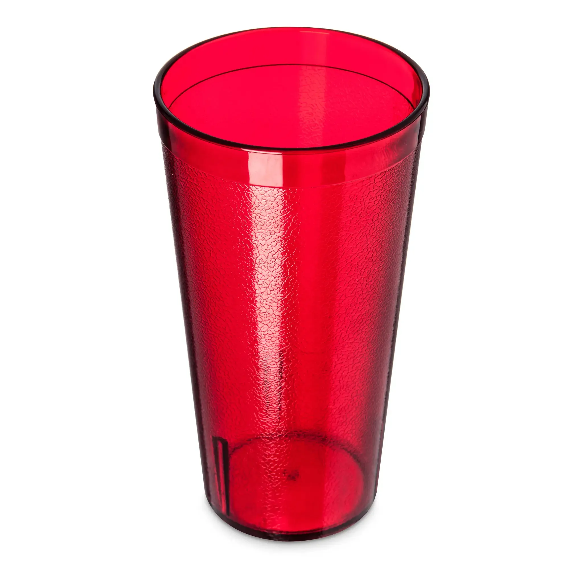Stay ahead in the competitive landscape with the Carlisle 522010 Plastic Tumbler. Designed for commercial restaurant use, this stackable tumbler is a must-have for any establishment. With a generous 20 oz. capacity (22.30 oz. flush fill), it's perfect for serving a variety of beverages to your customers. The tapered design and textured exterior provide a comfortable grip, while the ruby color adds a touch of elegance to your table settings. Made from durable and dishwasher-safe SAN material, this tumbler is built to withstand the demands of a busy restaurant environment. It's also recyclable and BPA-free, ensuring the safety of your customers and the environment. Trust Carlisle, a reputable vendor known for their quality products made in the USA. Elevate your restaurant's drink service with the Carlisle 522010 Plastic Tumbler.