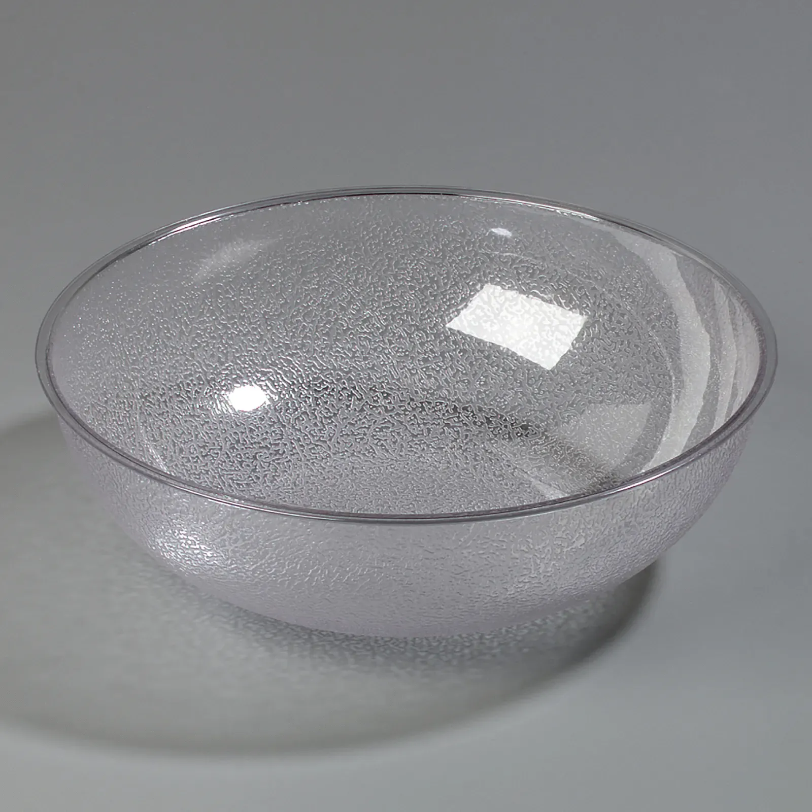 Introducing the Carlisle 721507 Serving Bowl, Salad Pasta, Plastic a must-have for commercial restaurants seeking consistency and precision. This 11 qt. salad bowl is designed to meet the demands of a busy kitchen, with a scratch and stain-resistant pebbled exterior that ensures durability and longevity. Made from polycarbonate, this bowl is not only freezer and dishwasher safe but also NSF certified, guaranteeing its suitability for commercial use. The 15" diameter and clear design allow for easy visibility and presentation of salads, pastas, and other dishes. Whether you're serving a large party or preparing for a busy lunch rush, the Carlisle 721507 Serving Bowl is the perfect choice for achieving consistency and precision in your culinary creations.
