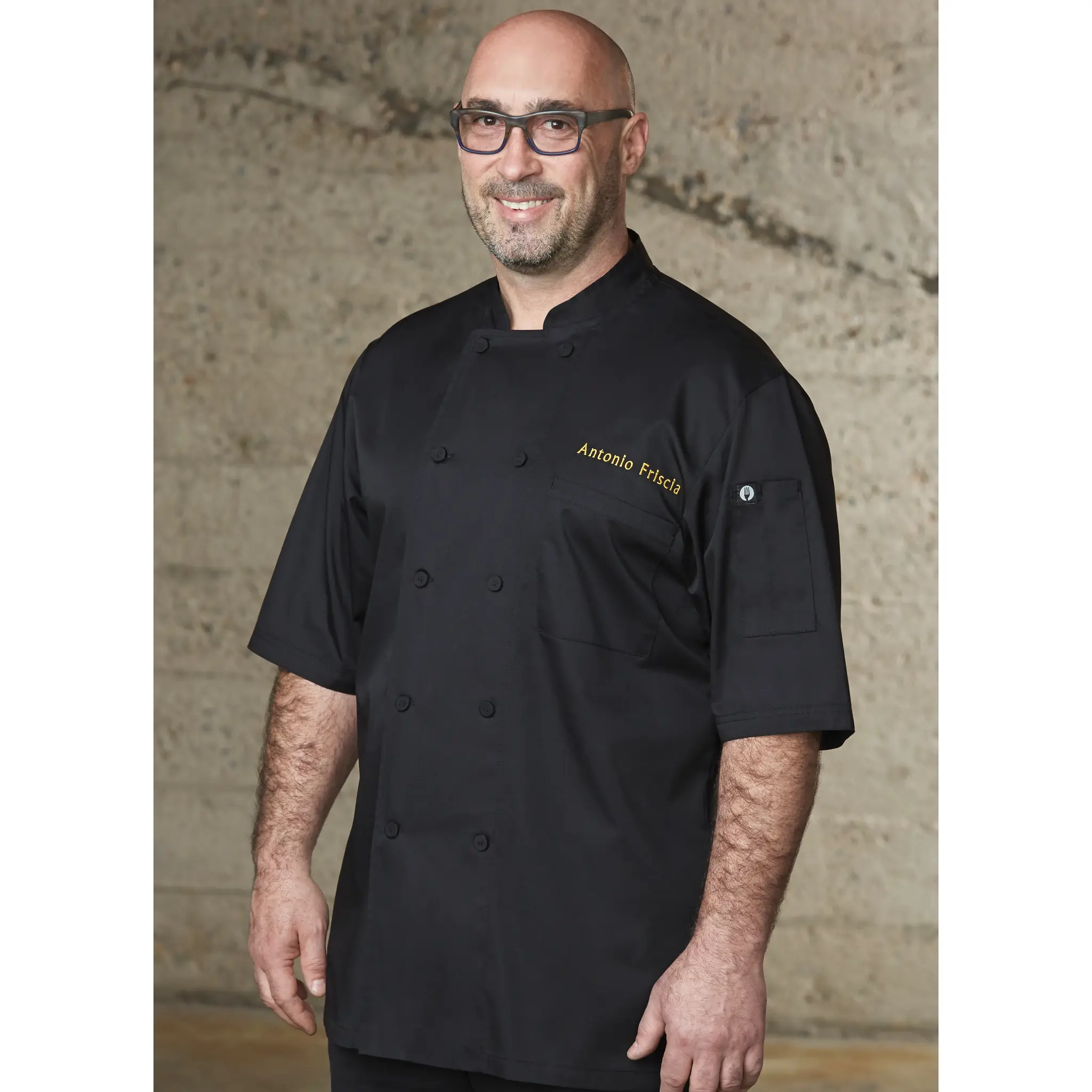 Elevate your kitchen with chef chic. The Chef Works, JLCVBLKL, Chef's Coat is the perfect addition to any commercial restaurant. Made with 4.7 oz., 65/35 poly/cotton lite twill fabric, this coat is both durable and comfortable, ensuring you can perform at your best even when things heat up in the kitchen. The Cool Vent back yoke provides excellent ventilation, keeping you cool and dry throughout your shift. With its double-breasted design and cloth-covered buttons, this coat exudes professionalism and style. It features a left chest patch and thermometer pockets, allowing for easy access to essential tools. The classic fit and black color add a touch of sophistication to your uniform. Upgrade your culinary attire with the Chef Works, JLCVBLKL, Chef's Coat.