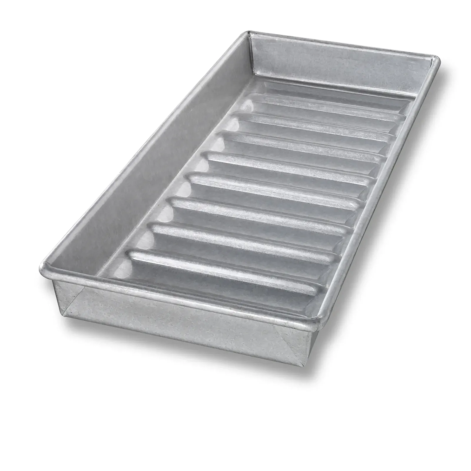 Create a seamless kitchen experience with the Chicago Metallic 22100 Bake Pan. This versatile pan is perfect for commercial restaurant use, offering exceptional quality and functionality. Made from durable 26 gauge aluminized steel, it ensures even heat distribution for consistent baking results. The pan features 10 compartments, each measuring 1-5/16" x 4-13/16", making it ideal for baking New England hot dog buns. The AMERICOAT ePlus silicone glaze provides a non-stick surface, reducing the need for excessive greasing and ensuring easy food release. Hand wash recommended for long-lasting performance. With its PFOA-free construction, this bake pan prioritizes safety and health. Whether you're a bakery, cafe, or restaurant, the Chicago Metallic 22100 Bake Pan is a must-have for creating delicious hot dog buns and other baked goods. Elevate your culinary creations and impress your customers with this exceptional bake pan.