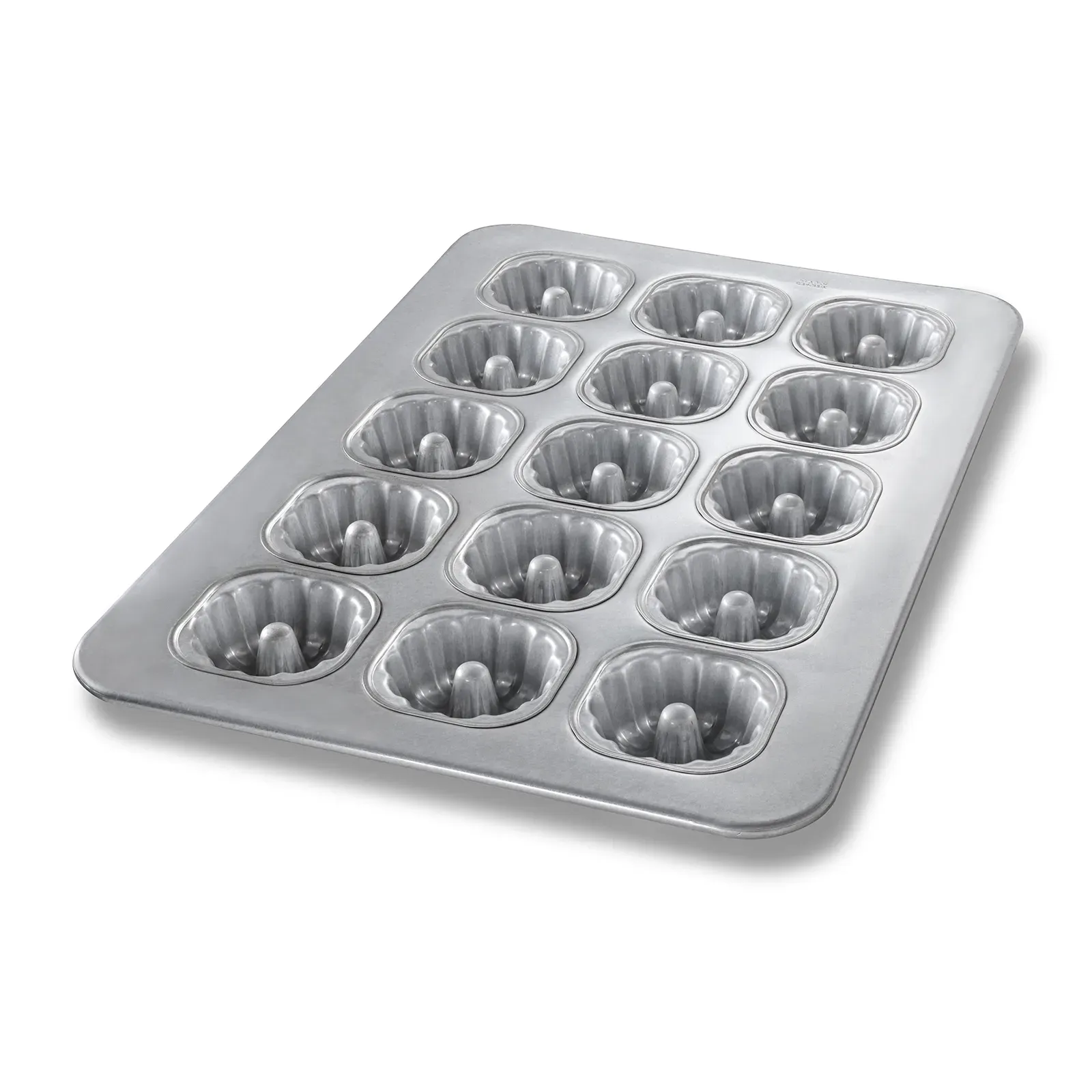 Maximize productivity with versatile equipment like the Chicago Metallic, 43055, Muffin Pan. Made from 22 gauge aluminized steel, it ensures durability and even heat distribution for consistent baking results. The pan features a wire-in-rim design with a tube, allowing for easy release of 15 perfectly shaped mini fluted tube cakes. Each cake has a generous 7.5 oz. capacity, making it ideal for serving individual portions or creating stunning dessert displays. The AMERICOAT ePlus silicone glaze provides a non-stick surface, reducing the need for excessive greasing and ensuring easy cleaning. Hand wash recommended. With its PFOA-free construction, this muffin pan prioritizes safety and health. Elevate your culinary creations with the Chicago Metallic, 43055, Muffin Pan.