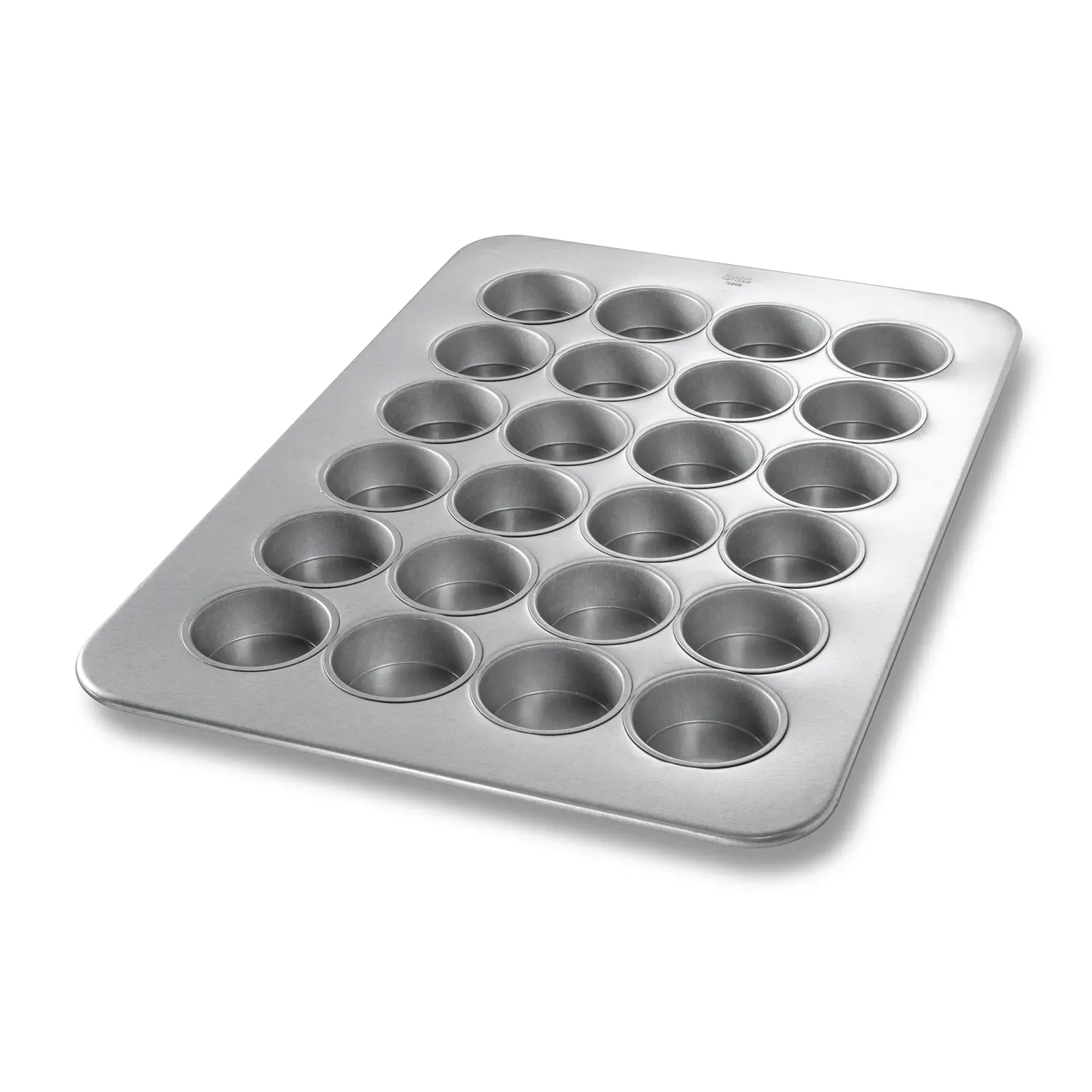 Stay competitive with cutting-edge equipment with the Chicago Metallic 45265 Muffin Pan. Designed for commercial restaurant use, this muffin pan is a game-changer in the kitchen. Made from 26 gauge aluminized steel, it ensures durability and even heat distribution for perfectly baked muffins every time. The pan features a wire-in rim, providing stability and preventing warping. With a capacity of 5.6 oz. each, it can make 24 muffins at once, saving time and increasing efficiency. The AMERICOAT ePlus silicone glaze guarantees easy release and quick cleanup, while being PFOA free for added safety. Hand wash recommended to maintain its quality. Whether you're running a bakery or a breakfast buffet, the Chicago Metallic 45265 Muffin Pan is a must-have for any commercial kitchen.