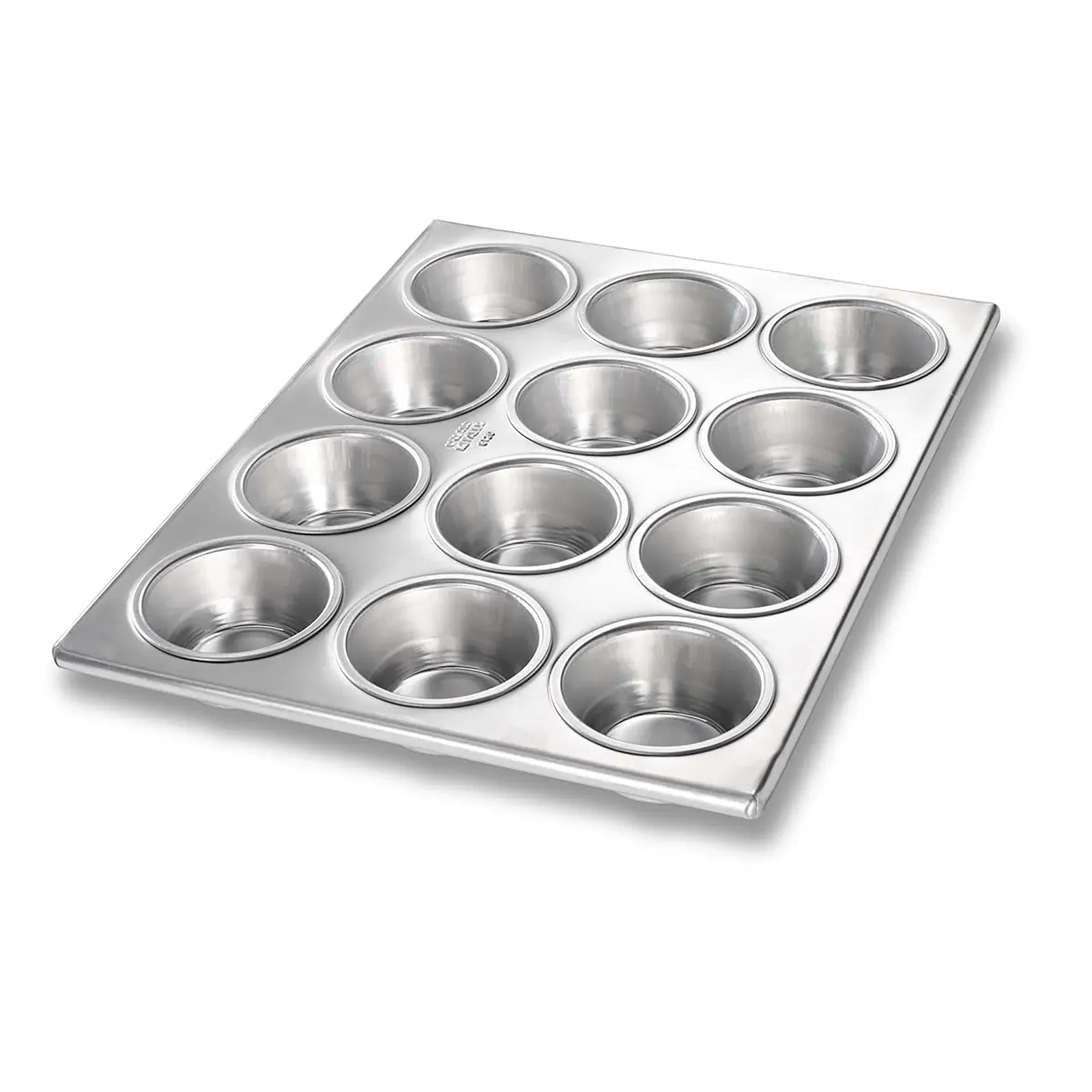 Maximize productivity with versatile equipment like the Chicago Metallic 46120 Muffin Pan. This high-quality pan, designed specifically for commercial restaurant use, is a must-have for any professional kitchen. With its 12-cup capacity and 2-3/4" diameter, it allows you to bake perfectly sized muffins or cupcakes every time. The 20-gauge aluminum construction ensures even heat distribution, resulting in consistent and delicious baked goods. The wire-in rim adds durability and stability, making it easy to transport the pan in and out of the oven. Whether you're serving breakfast, brunch, or dessert, this muffin pan is a reliable and efficient tool that will help you meet the demands of a busy restaurant kitchen. Trust Chicago Metallic, a reputable vendor known for their high-quality baking equipment, to deliver exceptional results every time.