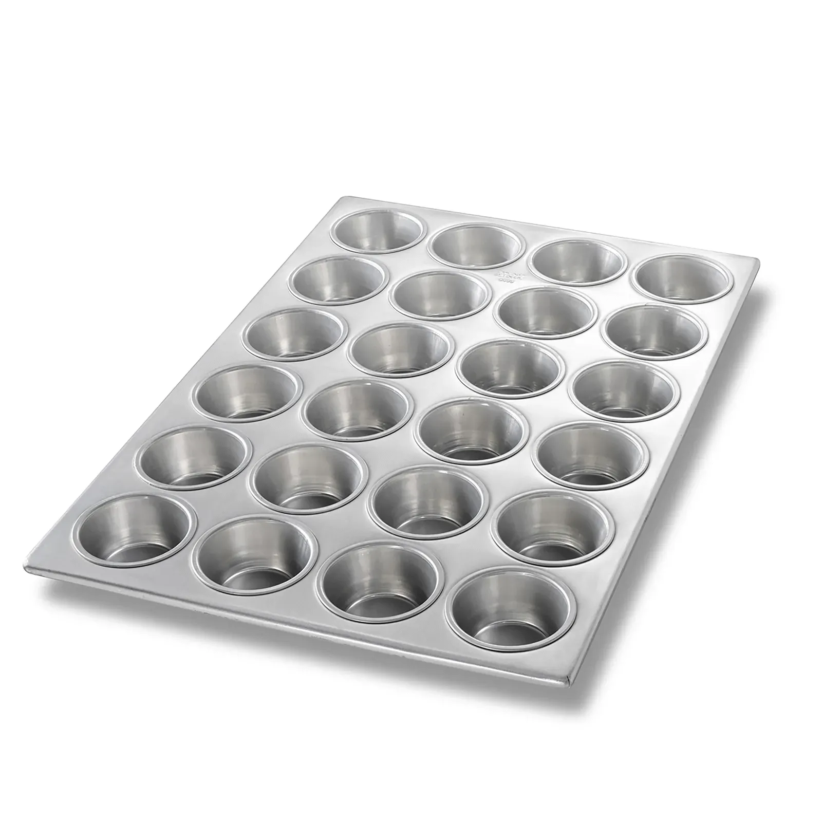 Elevate your restaurant's reputation with the Chicago Metallic 46520 Muffin Pan. This high-quality pan is designed to meet the demands of a commercial restaurant setting. Made with 20 gauge aluminum, it ensures durability and even heat distribution for perfectly baked muffins every time. With a capacity of 3.8 oz. each, this pan can make 24 delicious muffins at once, allowing you to serve a large number of customers efficiently. The wire-in rim adds strength and prevents warping, ensuring long-lasting performance. The plain design adds a touch of elegance to your baked goods, making them even more enticing to your customers. Whether you're serving breakfast, brunch, or dessert, this muffin pan is a must-have for any commercial kitchen. Trust Chicago Metallic, a reputable vendor known for their high-quality baking products, to deliver exceptional results.