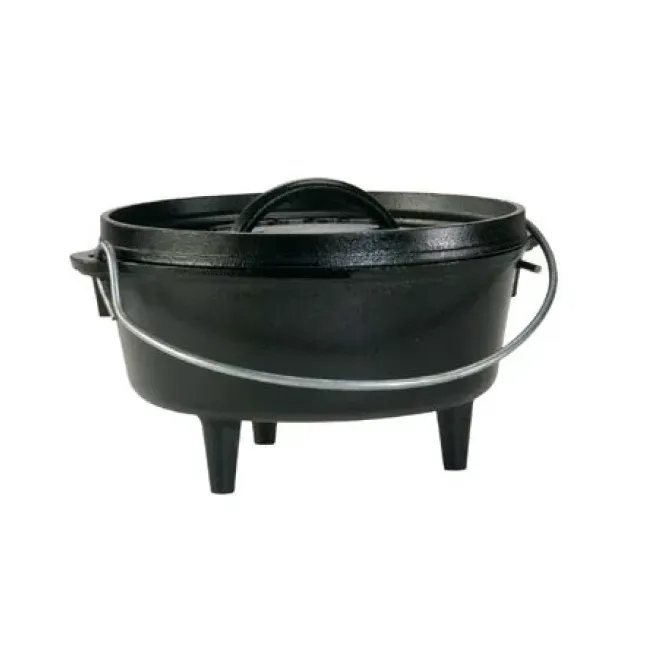Upgrade cooking processes for superior results with the Lodge Manufacturing, L8CO3, Cast Iron Dutch Oven. This 2-quart camp Dutch oven is perfect for commercial restaurant use, offering exceptional durability and versatility. Made in the USA with seasoned cast iron, this Dutch oven is designed to withstand high temperatures and provide even heat distribution for consistent cooking. The flanged lid can be used to hold coals or briquettes, allowing for efficient outdoor cooking. With its three integral legs and wire bail handle, this Dutch oven is fire safe and easy to transport. Whether you're using it on a stove top, grill, campfire, or oven, this Dutch oven delivers exceptional performance. It even comes with the Camp Dutch Oven Cooking 101 cookbook to inspire culinary creativity. Upgrade your restaurant's cooking capabilities with the Lodge Manufacturing, L8CO3, Cast Iron Dutch Oven.