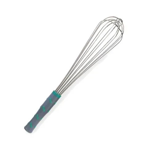 Fuel your passion for cooking with the Vollrath 47093 French Whip / Whisk. This essential kitchen tool is designed to meet the demands of a commercial restaurant setting. With its 16" long, one-piece construction and aqua nylon handle, this French whip is not only durable but also heat resistant up to 475°F (246°C). The textured handle with an end knob provides a secure grip, allowing for comfortable and efficient whisking. The 18-8 type 304 stainless wires with center reinforcement wire ensure optimal performance and longevity. Whether you're whipping up sauces, batters, or creams, this NSF-certified French whip is a reliable choice. It is part of the Jacobs Pride Collection and comes with a Limited Lifetime Warranty. Elevate your culinary creations with the Vollrath 47093 French Whip / Whisk.